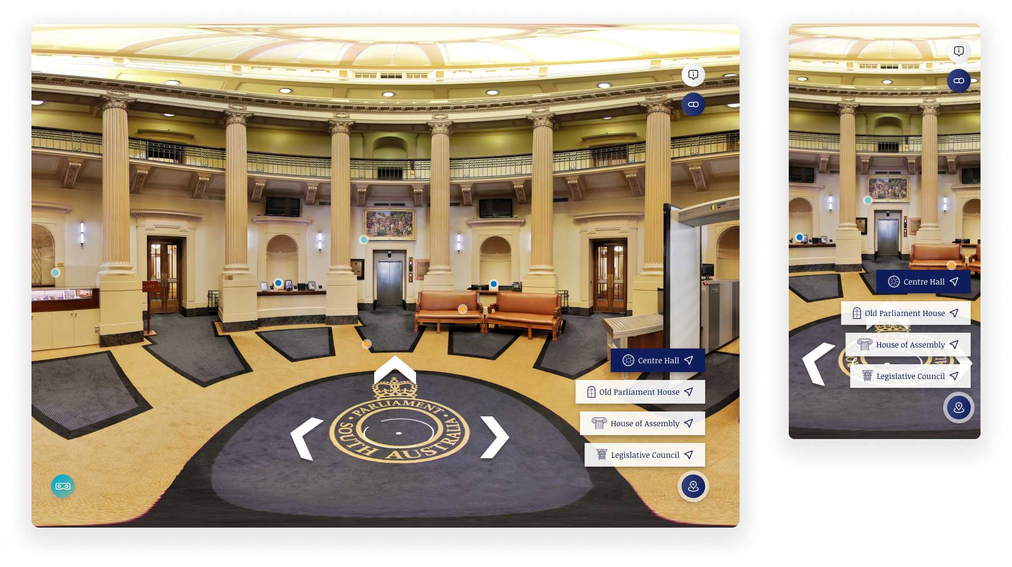 This project involved designing the interface for a live virtual tour of the South Australia Parliament House, created to help students explore civic spaces remotely through web and VR.