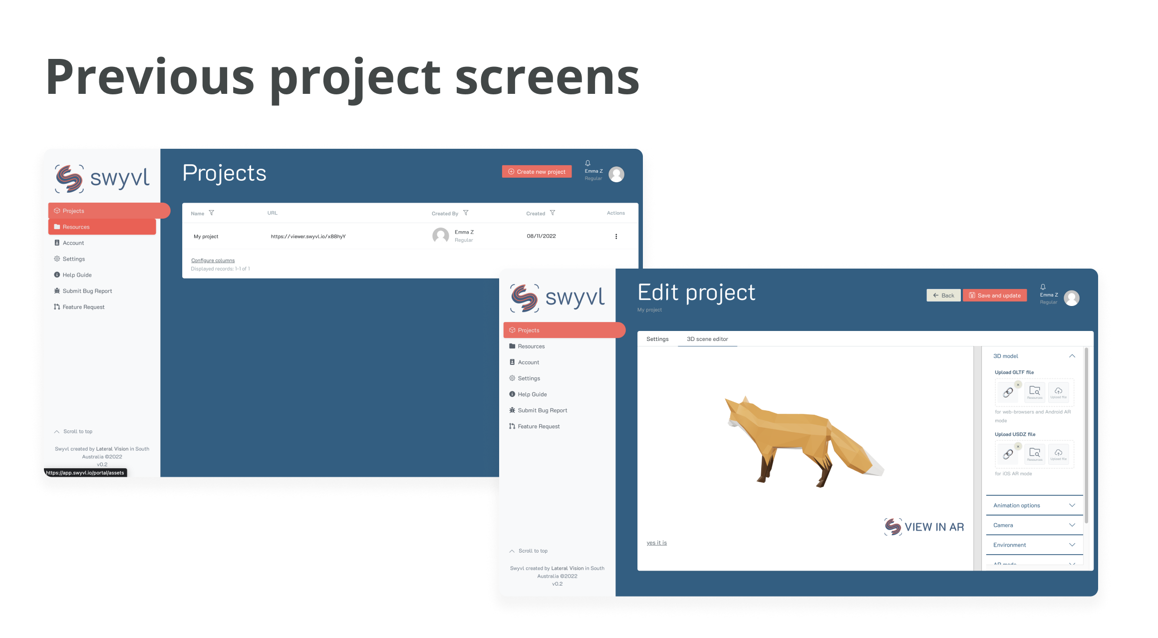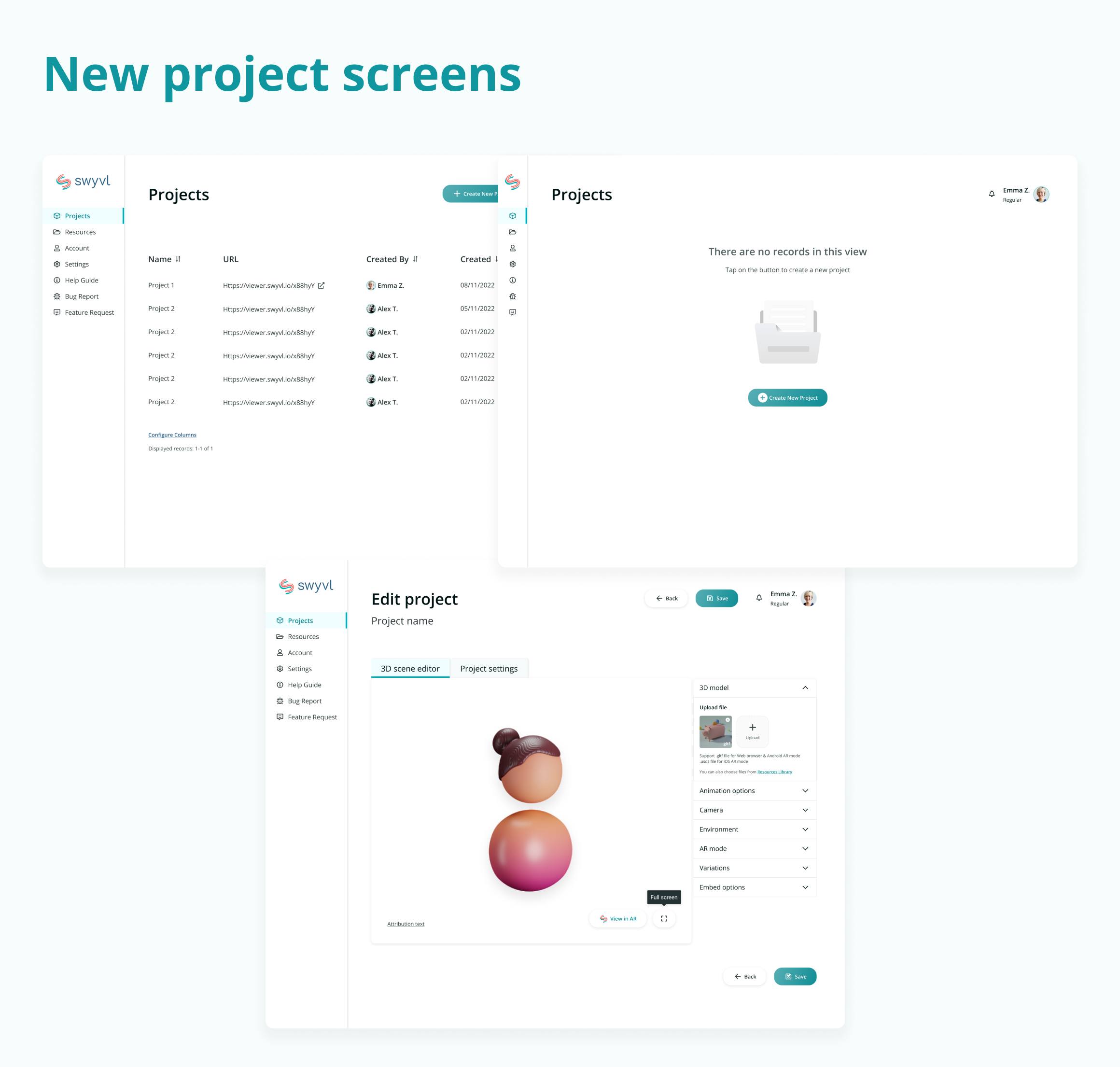 *Swyvl project dashboard & builder view